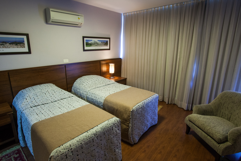 TARIFA SUPER ECONÔMICA, SEM CAFÉ DA MANHÃ INCLUSO. Apartamentos com Vista da cidade, equipado com TV de tela plana , telefone, frigobar, ar condicionado, cortesia de sinal Wi-Fi e estacionamento disponível no local (não necessita de reserva. Valor de cada café da manhã adquirido em nossa recepção: R$ 48,00. Serviço de quarto, cozinha 24hs. Reserva com política não reembolsável, não permetindo cancelamento e/ou alteração.Para melhor atendê-los, nos informe a sua preferencia quanto a configuração das camas.